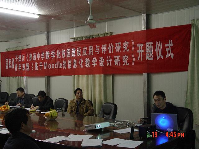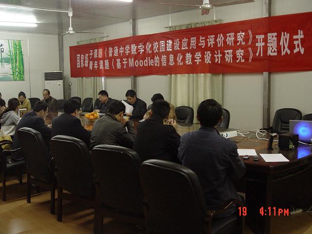 2011年11月18日下午,在校會議室隆重舉行兩項國家級課題的開題儀式,這是我校“科研興?!卑l(fā)展史上的又一盛事。這兩項國家級課題分別是:由張繼仁老師申報的子課題《普通中學數(shù)字化校園的建設、應用與評價研究》,經(jīng)中國教育技術(shù)協(xié)會專家組評審認為,符合協(xié)會承擔的國家社會科學基金“十二五”規(guī)劃課題《信息技術(shù)促進區(qū)域教育均衡發(fā)展的實證研究》的子課題入選條件,并被批準立項。由李瑞老師申報的青年課題《基于Moodle 信息化教學設計研究》,經(jīng)全國教育信息技術(shù)研究課題領(lǐng)導小組辦公室審定,同意立為全國教育信息研究“十二五”規(guī)劃2011年度青年課題。