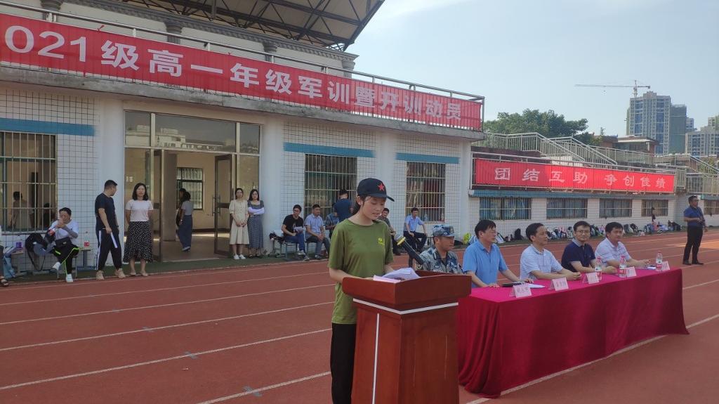 在開訓(xùn)動員上,高一年級部主任馮德義代表年級部對全體參訓(xùn)學(xué)員進(jìn)行了思想動員。軍訓(xùn)教官代表汴照祥提出了軍訓(xùn)規(guī)范要求。王嘉琪同學(xué)代表全體參訓(xùn)學(xué)員做了表態(tài)發(fā)言。