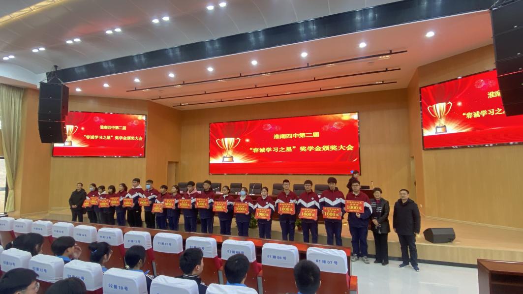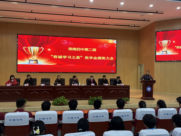 最后,黨委書記、校長常紅衛(wèi)代表學(xué)校向容誠慈善基金會(huì)、“容誠學(xué)習(xí)之星”獎(jiǎng)學(xué)金出資人朱宗瑞女士表示了感謝,并向全體學(xué)生提出了三點(diǎn)希望。希望獲獎(jiǎng)學(xué)子再接再厲、戒驕戒躁,要有“百尺竿頭更進(jìn)一步”的拼搏精神,爭取更大的榮譽(yù);希望其他同學(xué)奮發(fā)努力、追趕先進(jìn),要有“不言放棄再戰(zhàn)一程”的追趕精神,實(shí)現(xiàn)自己的目標(biāo);希望全體同學(xué)常懷感恩、錘煉品德,要自覺樹立和踐行社會(huì)主義核心價(jià)值觀,做具有“君子風(fēng)范、工匠品質(zhì)”的淮南四中優(yōu)秀學(xué)子。