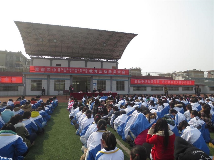 動員大會依次進(jìn)行了八項議程:校政教處徐坤偉主任首先對社會主義核心價值觀進(jìn)行了解讀,臧德煜副校長宣讀了淮南四中首屆“好男生、好女生”評選表彰決定,隨后對淮南四中首屆“好男生、好女生” 進(jìn)行了表彰,好男生代表高一( 13 )夏天一、好女生代表高一( 20 )程金金先后發(fā)言,校政教處副主任、團(tuán)委書記李永興向同學(xué)們發(fā)出踐行社會主要核心價值觀的倡議,陳紅日副校長結(jié)合學(xué)生九大不文明行為發(fā)表了講話,謝竹苗校長發(fā)表了熱情洋溢的總結(jié)講話,最后,高一級部、高二級部分別進(jìn)行了集體宣誓。